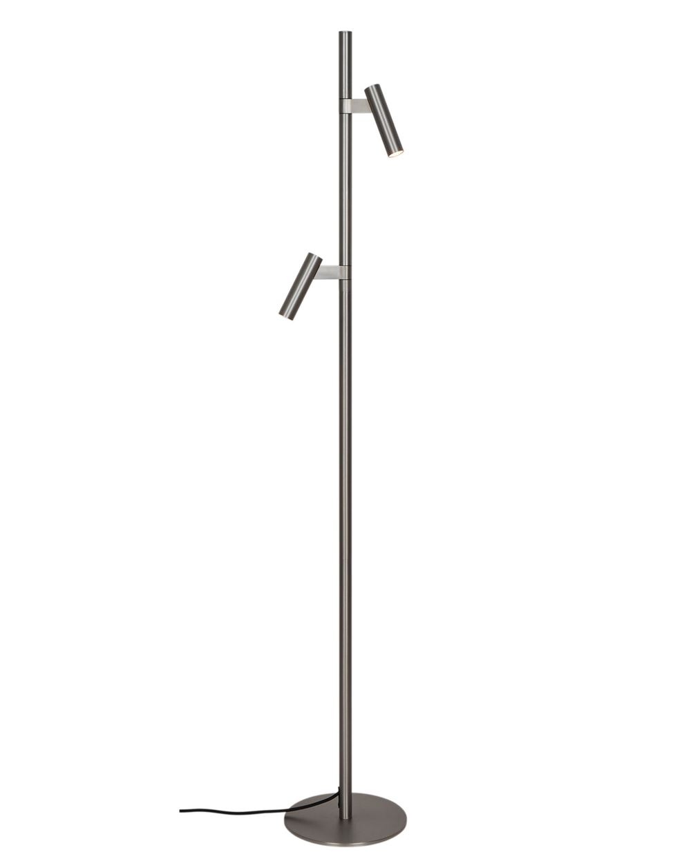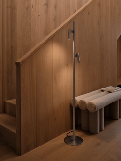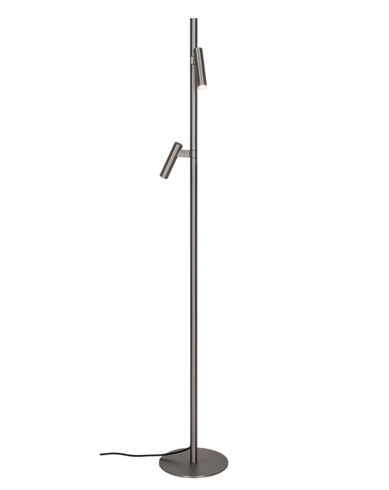 Die Stehleuchte Makoto ist dänisches Design mit einem schlanken, minimalistischen Ausdruck und zwei verstellbaren Schirmen. Das warme, gebürstete Finish verleiht dem industriellen Look der Leuchte eine weiche Note. Die Schirme lassen sich um 30° neigen und um 120° drehen und machen die elegante Leuchte ideal als Leselicht am Sessel oder Sofa.