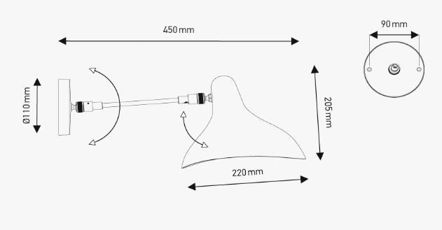 Die Wandleuchte ist ohne Kabel und Schalter!