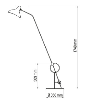 Die Mantis BS8 L Stehleuchte wurde strukturell feinjustiert und verbessert, genau so, wie Schottlander es sich einst vorgestellt hatte. Hier spielt die Spannung zwischen Balance und Unbalance mit der langen Stahlstange und einem schwarzen Schirm, der sich auf einem Kugelgelenk dreht. Die BS8 L Stehleuchte hat einen neuen Sockel und Arm, die das ursprüngliche System aus Stativ und Gegengewicht in eine geniale "Quadratur des Kreises" mit suggestiver Grafik und Leere verwandeln.