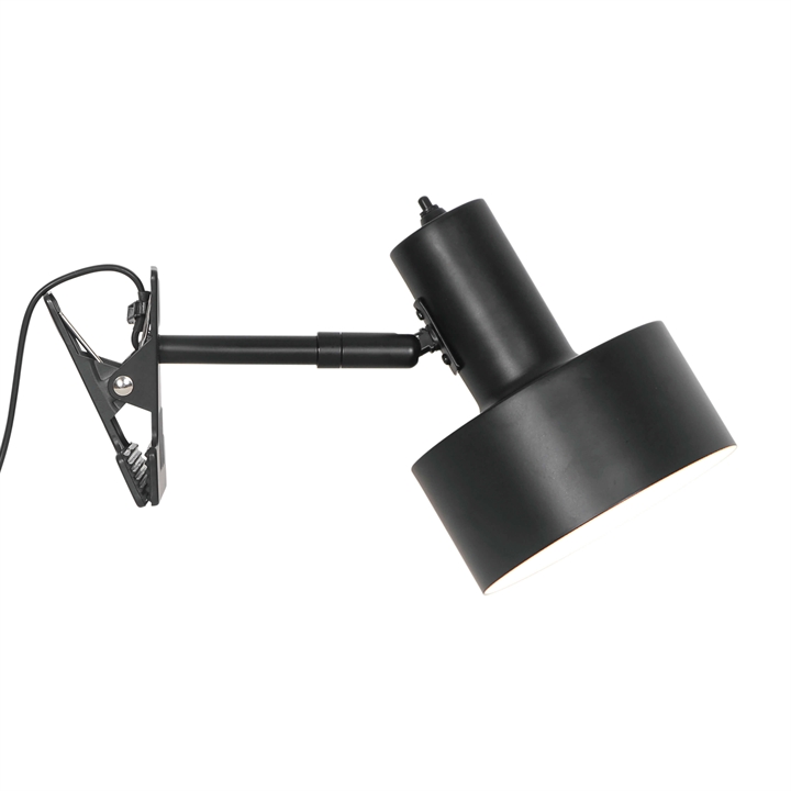 Die Klemmleuchte Matis hat ein minimalistisches Design, das sich gut in viele Einrichtungsstile einfügt. Die Lampe ist dank ihrer Klemme leicht zu platzieren und zu bewegen und hat einen verstellbaren Lampenkopf, der um 90° geneigt und um 320° gedreht werden kann. Der Klemmspot bietet ein gutes Licht und erzeugt durch die kleinen Löcher oben am Schirm einen schönen Lichteffekt. Verwenden Sie ihn als Arbeitslicht, Leselampe oder für andere fokussierte Beleuchtung.