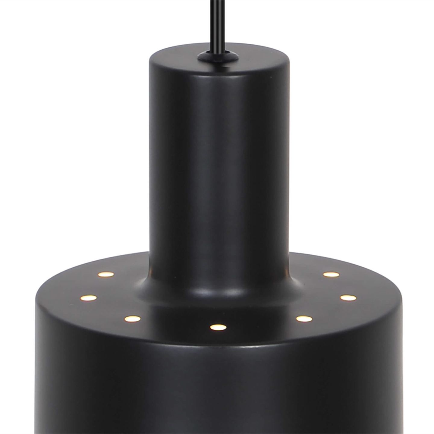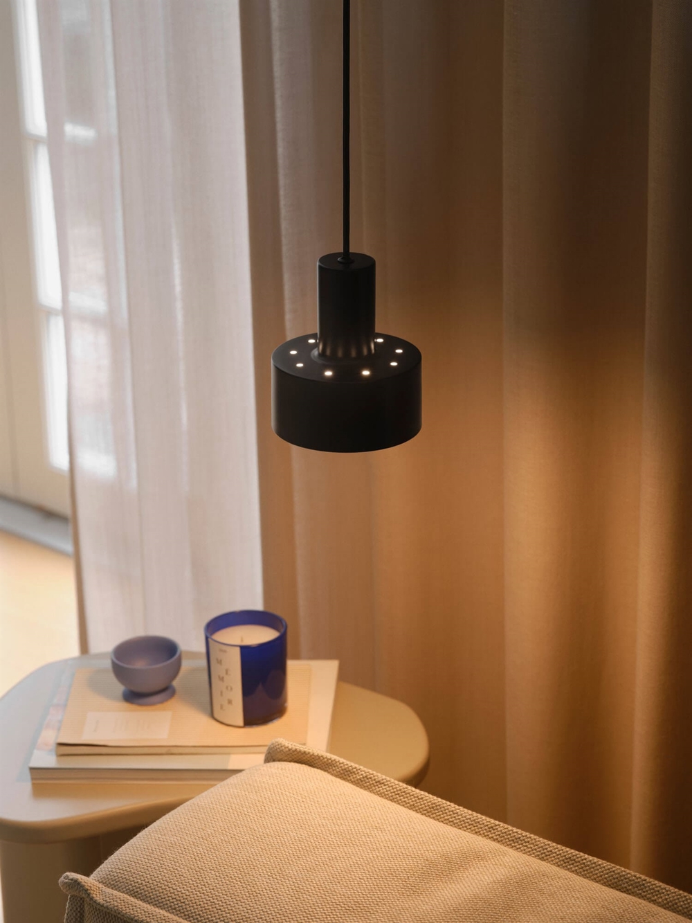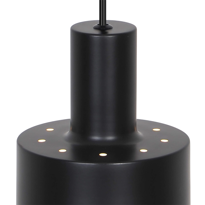 Die Pendelleuchte Matis hat ein minimalistisches Design, das in viele Einrichtungsstile passt. Die klassische Pendelleuchte bietet ein gutes nach unten gerichtetes Licht und erzeugt einen schönen Lichteffekt durch die kleinen Löcher oben am Schirm. Verwenden Sie sie einzeln oder mehrere zusammen als Küchenpendel, Arbeitslicht oder gemütliche Beleuchtung in einer Ecke des Wohnzimmers.