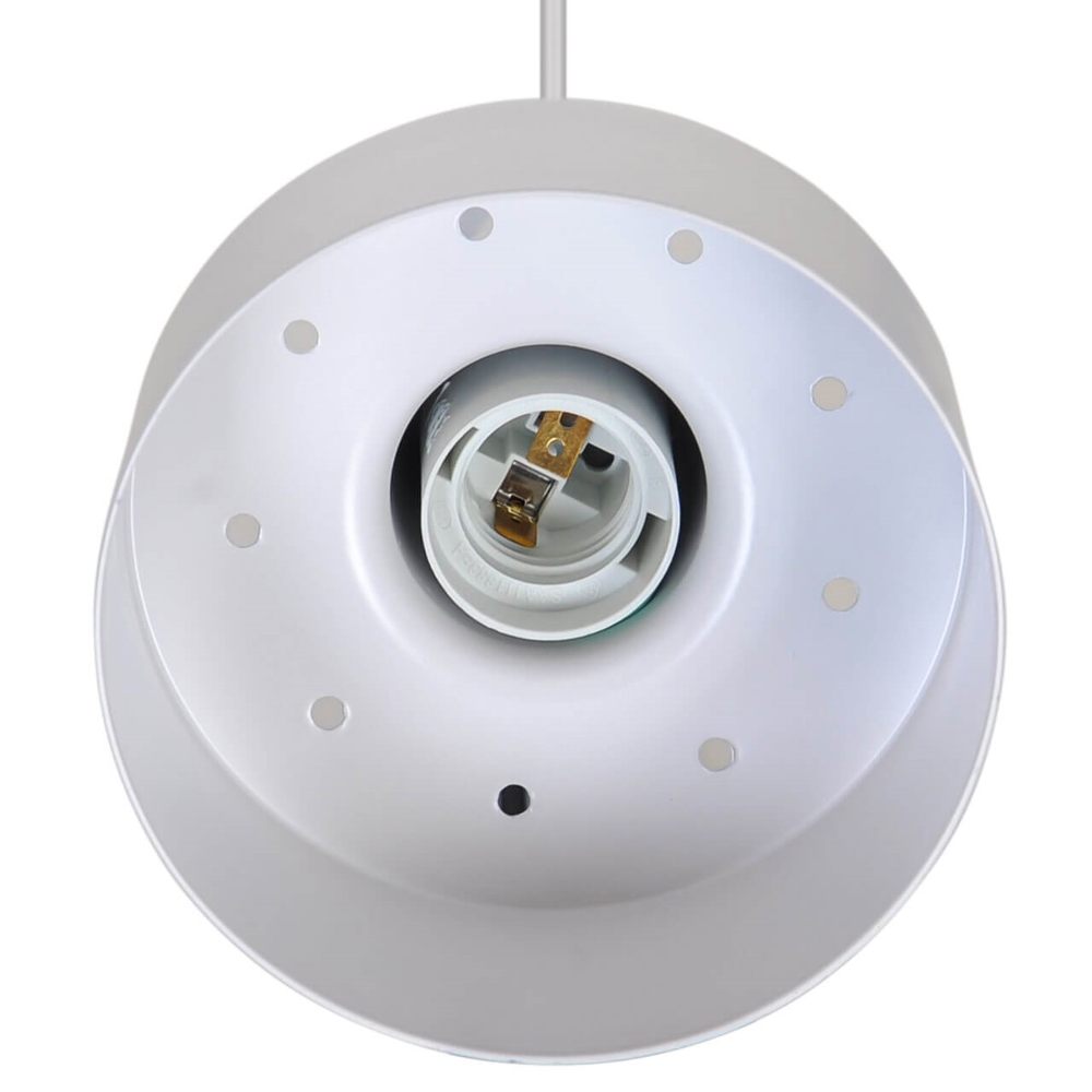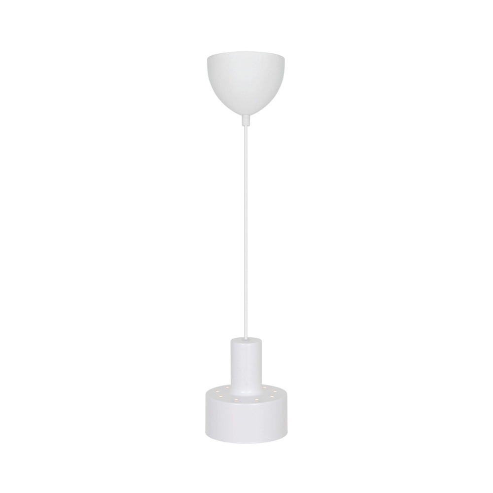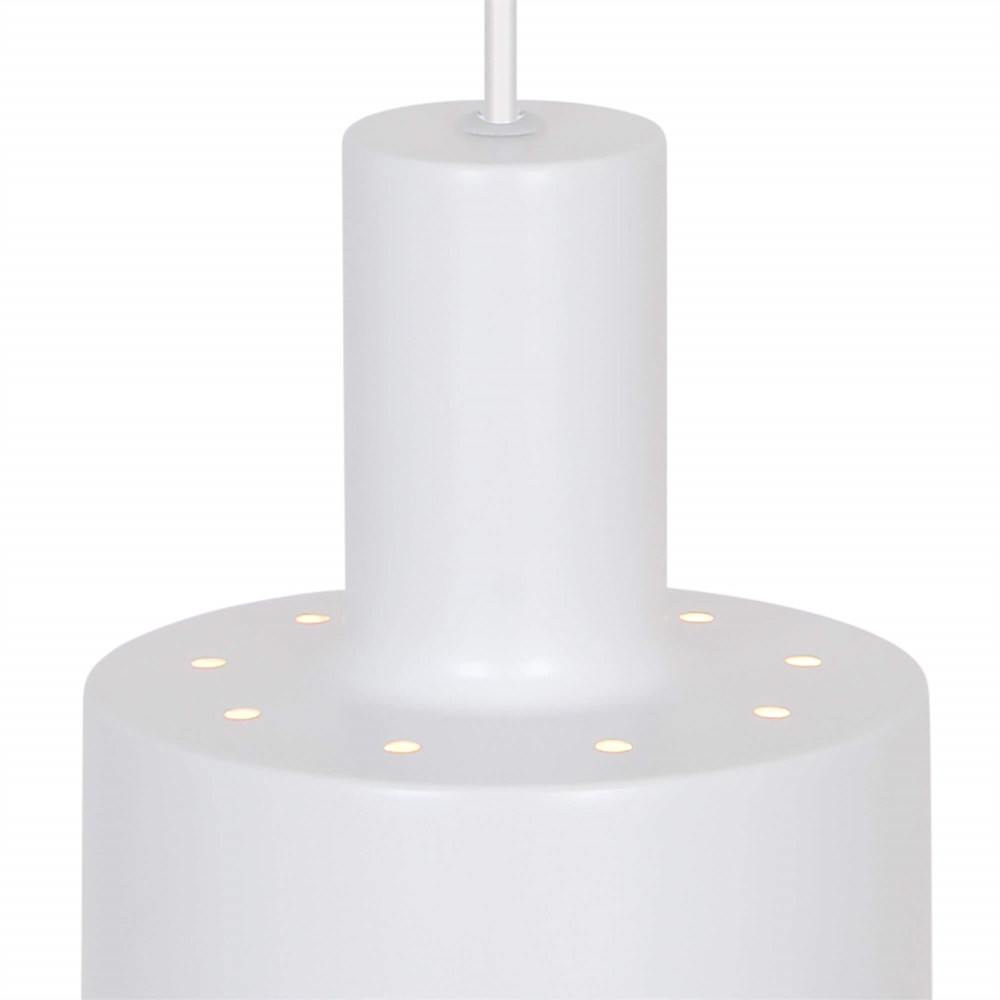 Die Pendelleuchte Matis hat ein minimalistisches Design, das in viele Einrichtungsstile passt. Die klassische Pendelleuchte bietet ein gutes nach unten gerichtetes Licht und erzeugt einen schönen Lichteffekt durch die kleinen Löcher oben am Schirm. Verwenden Sie sie einzeln oder mehrere zusammen als Küchenpendelleuchte, Arbeitslicht oder gemütliche Beleuchtung in einer Ecke des Wohnzimmers.