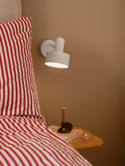 Die Wandleuchte Matis hat ein minimalistisches Design, das sich gut in viele Einrichtungsstile einfügt. Die klassische Wandleuchte verfügt über einen verstellbaren Lampenkopf, der um 90° geneigt und um 320° gedreht werden kann. Die Lampe bietet ein gutes Licht und erzeugt durch die kleinen Löcher oben am Schirm einen schönen Lichteffekt. Verwenden Sie die Wandleuchte als Bettlampe im Schlafzimmer, Arbeitslicht am Schreibtisch oder Leselampe neben dem Sessel im Wohnzimmer.