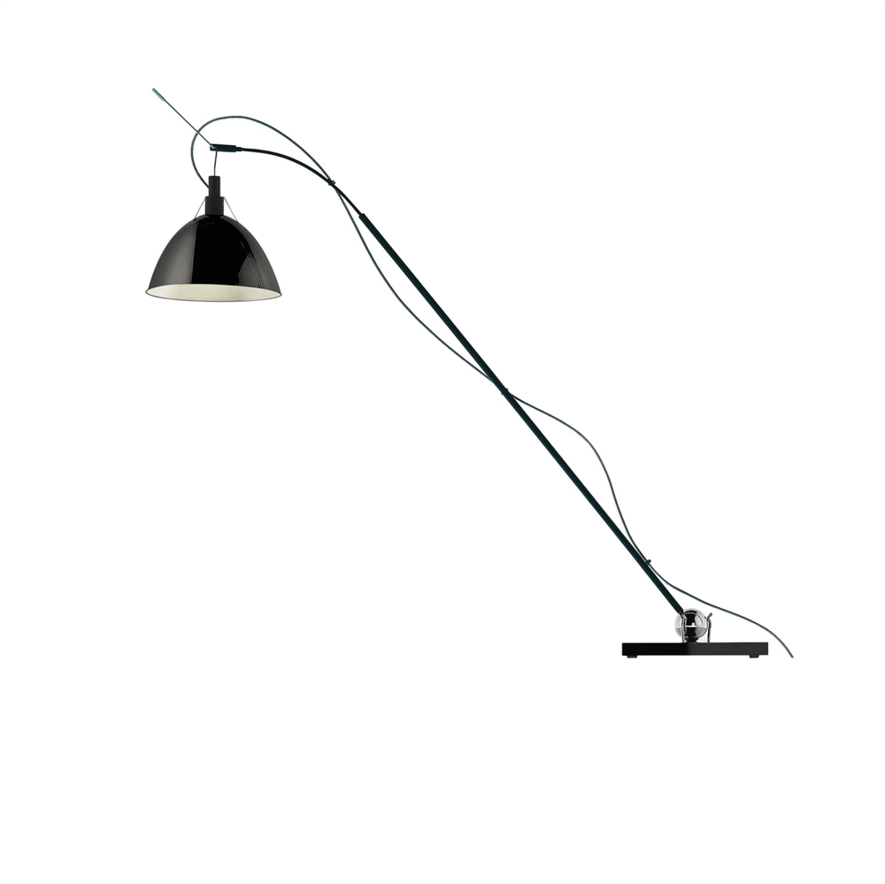Ingo Maurer Max. Kugler Tischlampe ist aus reinem Aluminium und Edelstahl gefertigt. Die Lampe in Schwarz ist mit einer schwarzen Bodenplatte und einem schwarzen Reflektor ausgestattet. Das Kugelgelenk ermöglicht es, die Lampe in alle Richtungen zu drehen und zu kippen. Der Teleskoparm erstreckt sich von 60 bis 90 cm. Der Reflektor (mit Griff) kann in alle Richtungen gedreht werden.