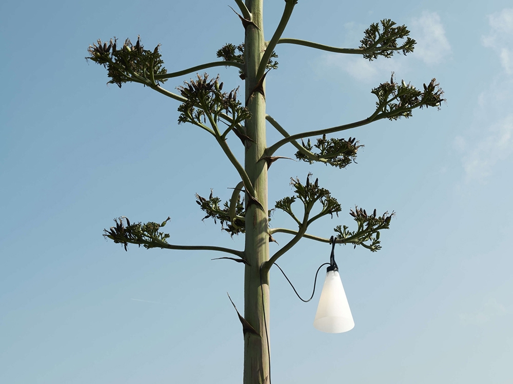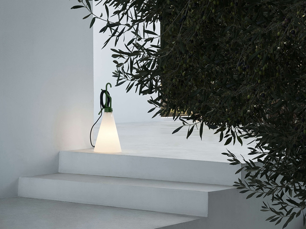 Die funktionale Mayday Lampe gibt es jetzt auch als Außenleuchte, die stehend auf dem Boden oder hängend z.B. in einem Baum oder unter der Terrassenüberdachung verwendet werden kann.