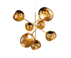Melt großer Kronleuchter ist in den Varianten Silber, Kupfer, Gold, Rauch, Opal/Silber und Opal/Gold erhältlich. Es gibt auch eine Mini- und eine kleine Version.