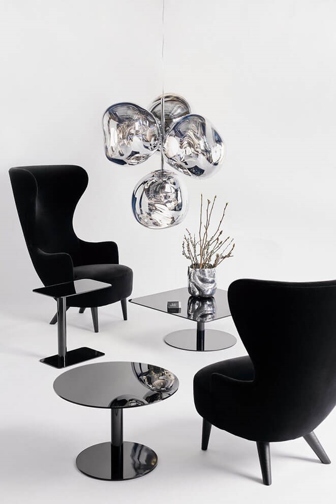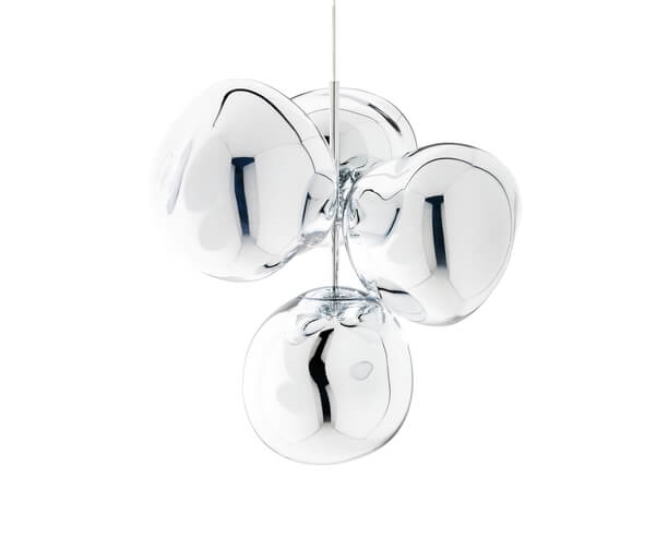 Die Melt-Serie wurde in Zusammenarbeit zwischen Tom Dixon und dem schwedischen Designkollektiv Front mit dem Wunsch geschaffen, ein unvollkommenes, organisches und naturalistisches Lichtobjekt zu kreieren. Der Ausdruck der Serie ist inspiriert von geschmolzenem Glas, dem Inneren eines schmelzenden Gletschers und Bildern des tiefen Raums.