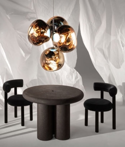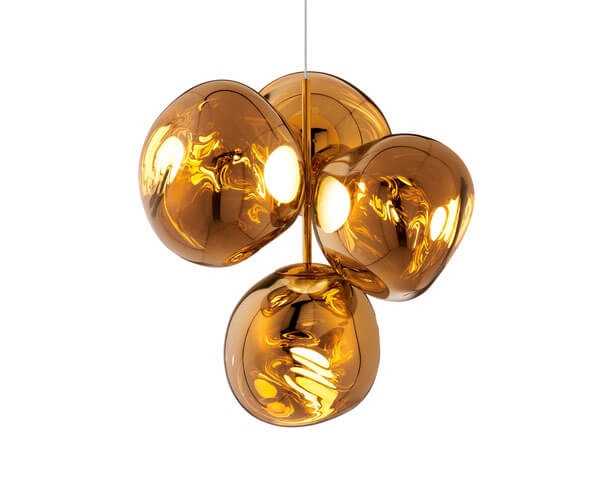 Die Melt-Serie wurde in Zusammenarbeit zwischen Tom Dixon und dem schwedischen Designkollektiv Front mit dem Wunsch geschaffen, ein unvollkommenes, organisches und naturalistisches Lichtobjekt zu kreieren. Der Ausdruck der Serie ist inspiriert von geschmolzenem Glas, dem Inneren eines schmelzenden Gletschers und Bildern des tiefen Raums.