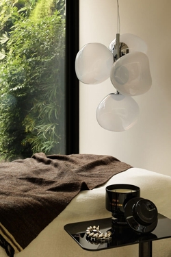 Melt besteht aus Tischlampen, Stehlampen, Wandleuchten, Deckenleuchten, Pendelleuchten und Kronleuchtern.