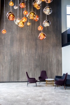 Melt besteht aus Tischlampen, Stehlampen, Wandleuchten, Deckenleuchten, Pendelleuchten und Kronleuchtern.