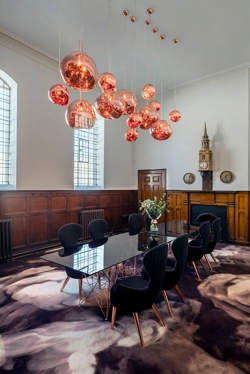 Die Melt-Serie wurde in Zusammenarbeit zwischen Tom Dixon und dem schwedischen Designkollektiv Front mit dem Wunsch geschaffen, ein unperfektes, organisches und naturalistisches Lichtobjekt zu kreieren. Der Ausdruck der Serie ist inspiriert von geschmolzenem Glas, dem Inneren eines schmelzenden Gletschers und Bildern des tiefen Raums.