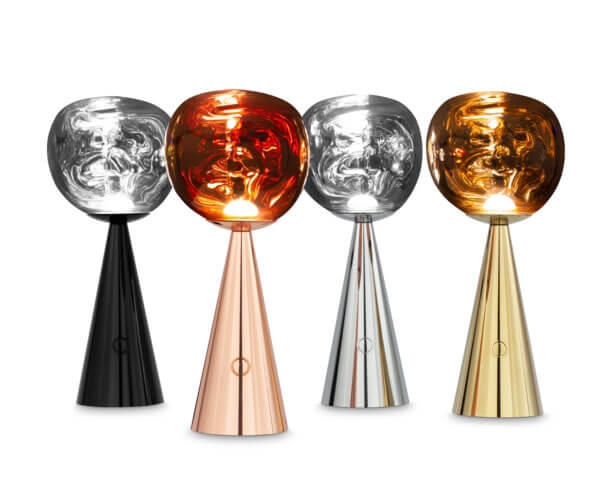 Melt Portable ist in den Varianten Silber, Gold, Kupfer oder Schwarz mit einer metallisierten Oberfläche mit Spiegeleffekt erhältlich.