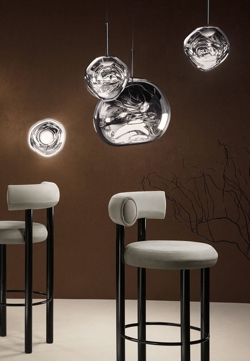 Die Melt-Serie entstand in Zusammenarbeit zwischen Tom Dixon und dem schwedischen Designkollektiv Front mit dem Wunsch, ein unvollkommenes, organisches und naturalistisches Lichtobjekt zu schaffen. Der Ausdruck der Serie ist inspiriert von geschmolzenem Glas, dem Inneren eines schmelzenden Gletschers und Bildern des tiefen Raums.