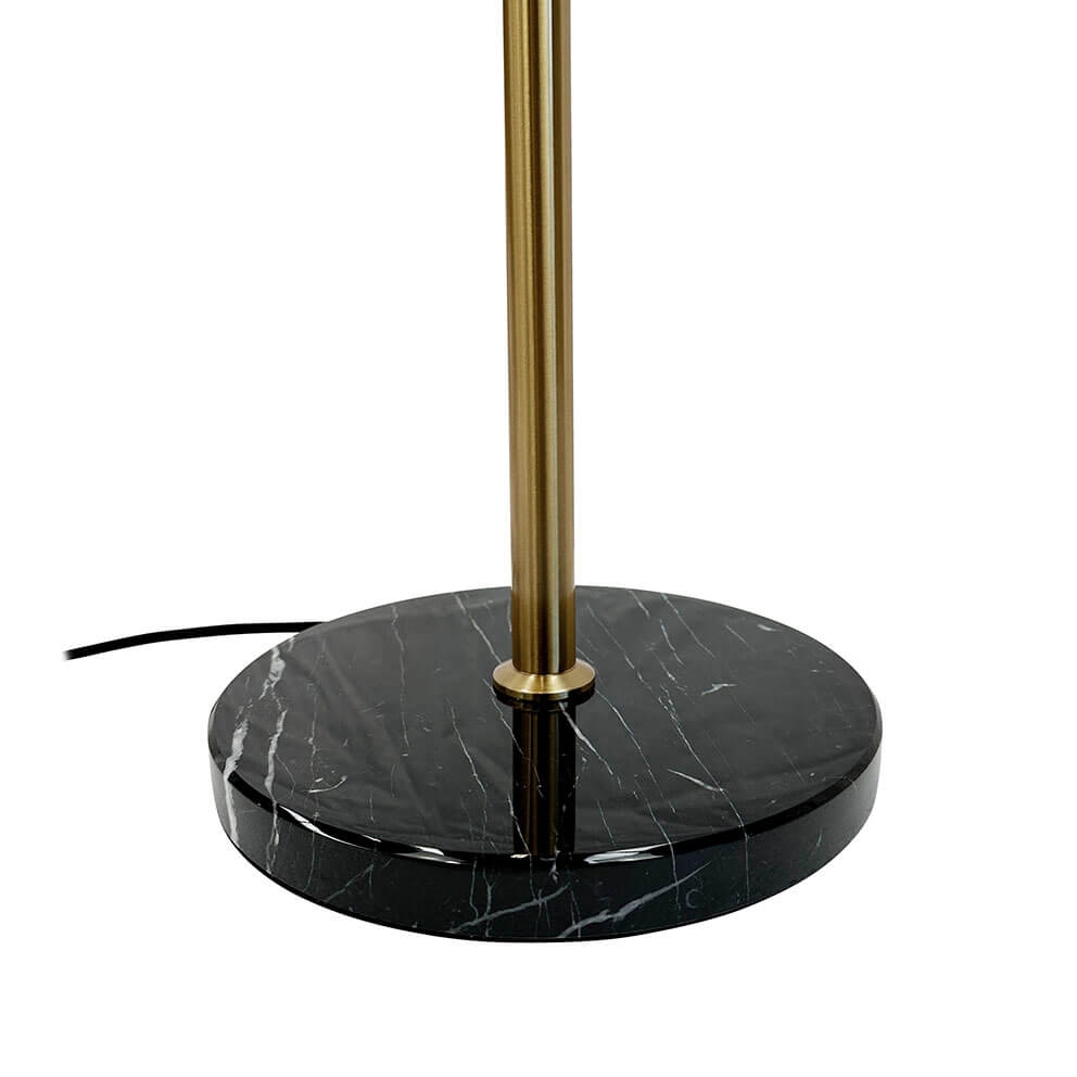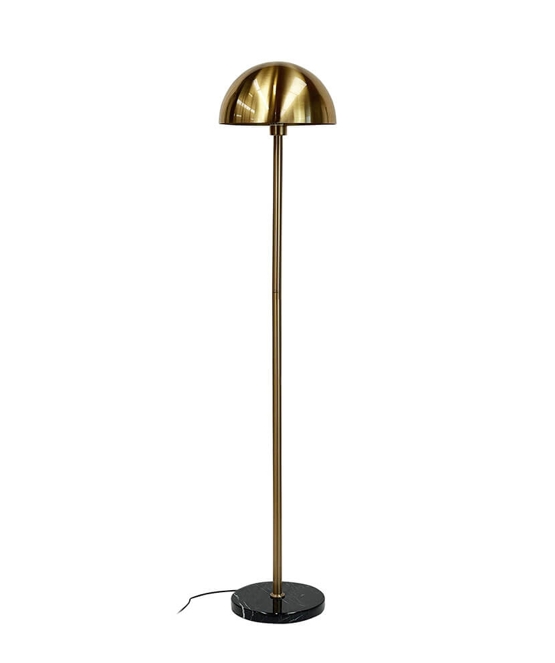Die Menton Stehlampe aus der Serie French Collection ist aus Messing gefertigt und hat einen soliden Sockel aus schwarzem Marmor. Die elegante und zeitlose Stehlampe hat einen exklusiven Ausdruck, und der kuppelförmige Lampenschirm sorgt für ein weiches und gleichmäßiges Licht, das beispielsweise als Stimmungsbeleuchtung im Wohnzimmer verwendet werden kann.