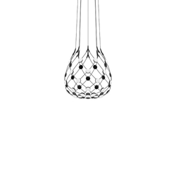 Mesh hat ein einzigartiges Design und erzeugt einen großen theatralischen Effekt, wo immer sie hängt. Aufgrund der Form der Lampe wird das Licht weit verteilt. Sie könnte daher ideal über einem Esstisch aufgehängt werden.