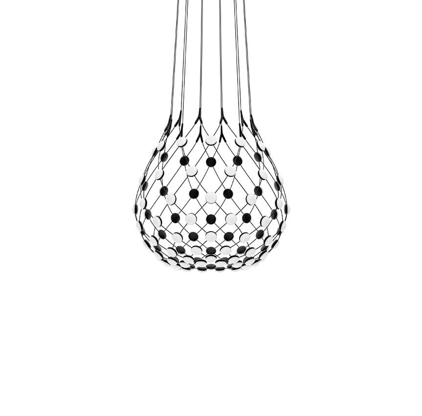 Die elegante Mesh Pendelleuchte erhellt jeden Raum mit ihrer transparenten Struktur und schönen Details. Die Pendelleuchte besteht aus flexiblen Kabeln, die sich um LED-Lichtquellen gruppieren und mit Phasendimmung gedimmt werden.