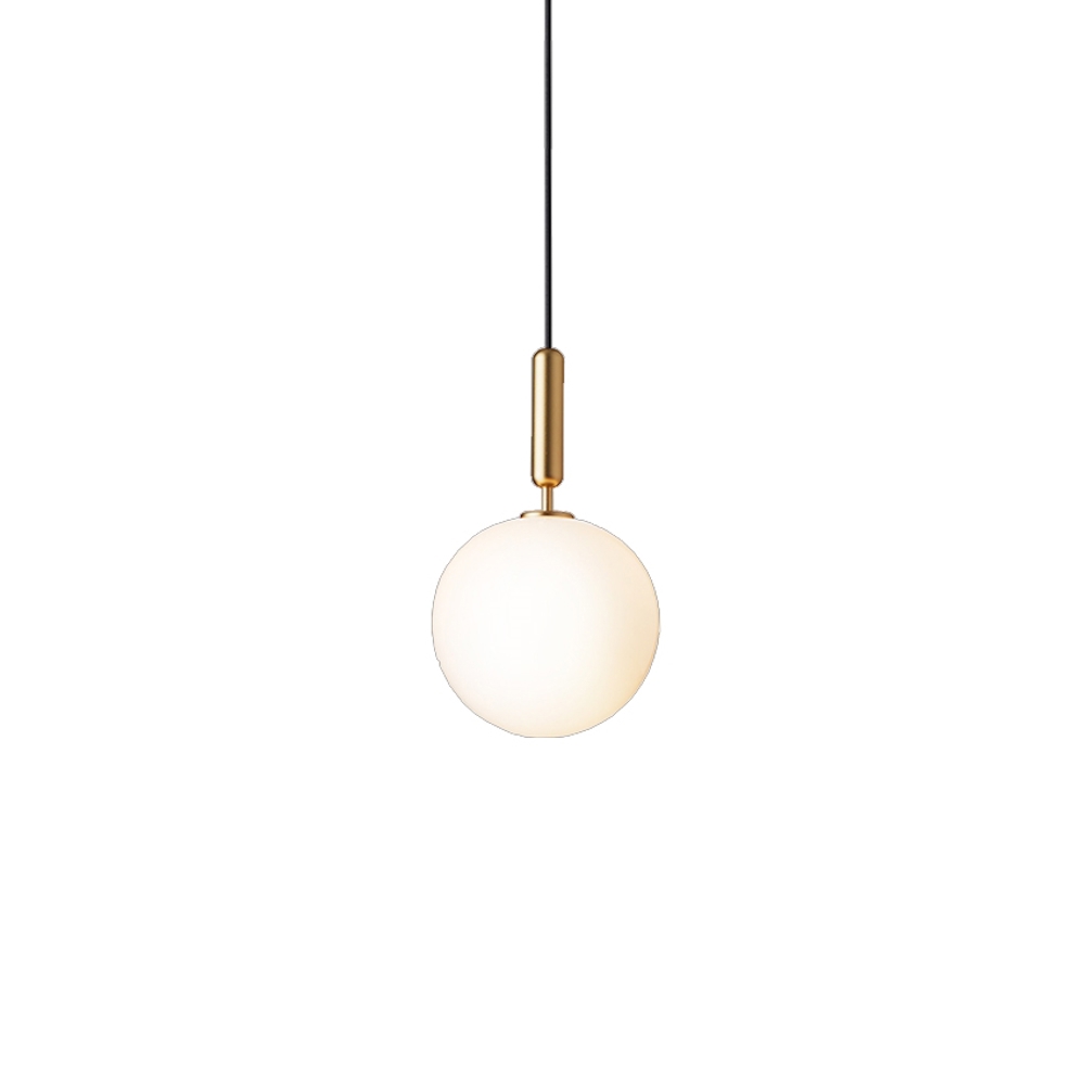 Das opale Glas ist mundgeblasen und bildet einen schönen Kontrast zum Messing.