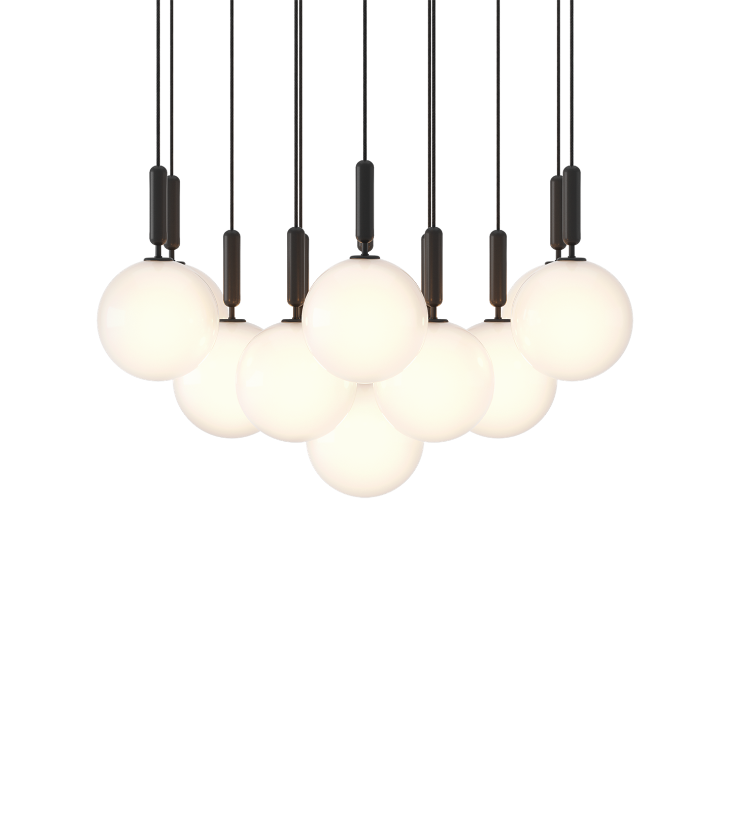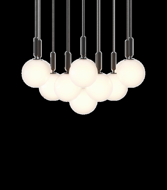 Miira 13 Large Pendelleuchte besteht aus 13 x Miira large + Deckenplatte 13