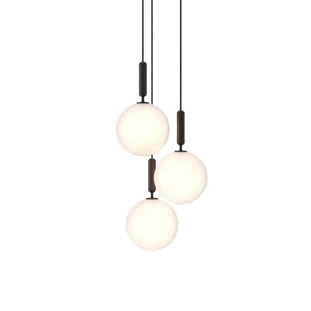 Miira 3 Large Pendelleuchte besteht aus 3 x Miira large + Deckenplatte 3