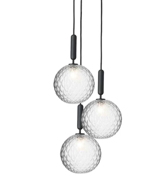 Miira 3 Pendelleuchte besteht aus 3 x Miira Pendelleuchten + Deckenplatte 3