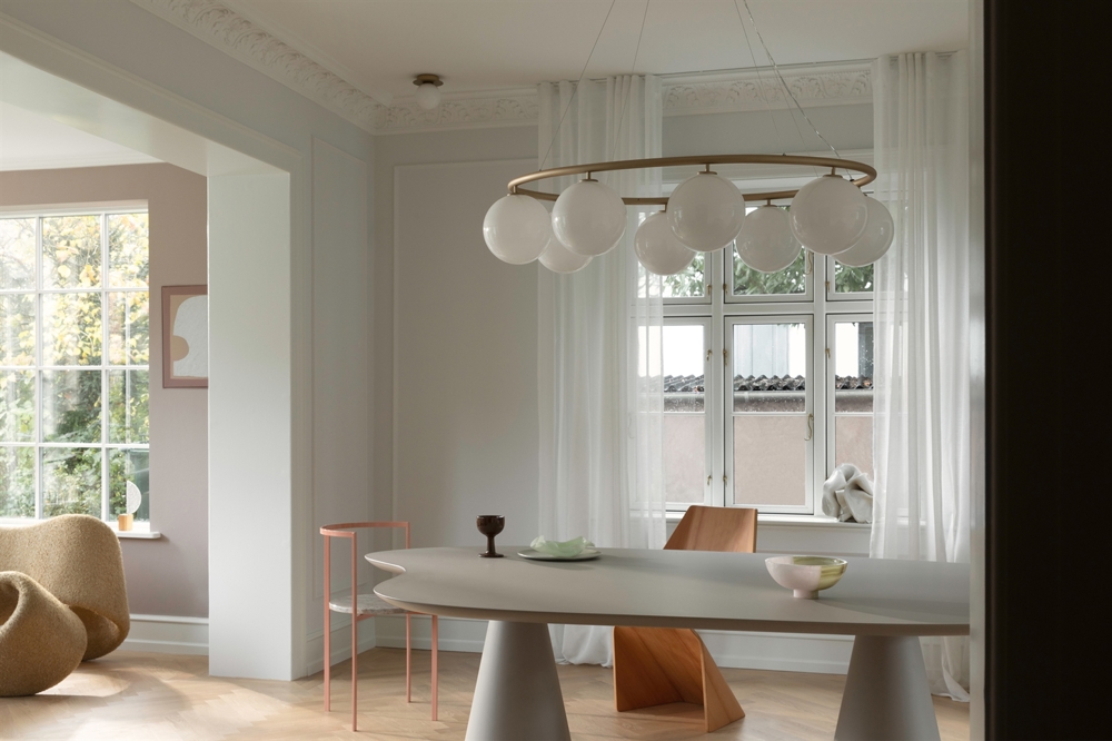 Nuuras Miira-Kollektion hat bereits Preise für ihr Design von Sofie Refer gewonnen und wird hier um einen ovalen Kronleuchter erweitert. Der Kronleuchter ist in mehreren Farbvarianten mit 8 mundgeblasenen Glaskugeln erhältlich. Der Miira Oval Kronleuchter hat einen klassischen Ausdruck und ist so gestaltet, dass er sowohl niedrig als auch hoch von der Decke hängen kann. Der Kronleuchter lässt sich einfach in der Höhe verstellen durch ein spezielles Drahtsystem.