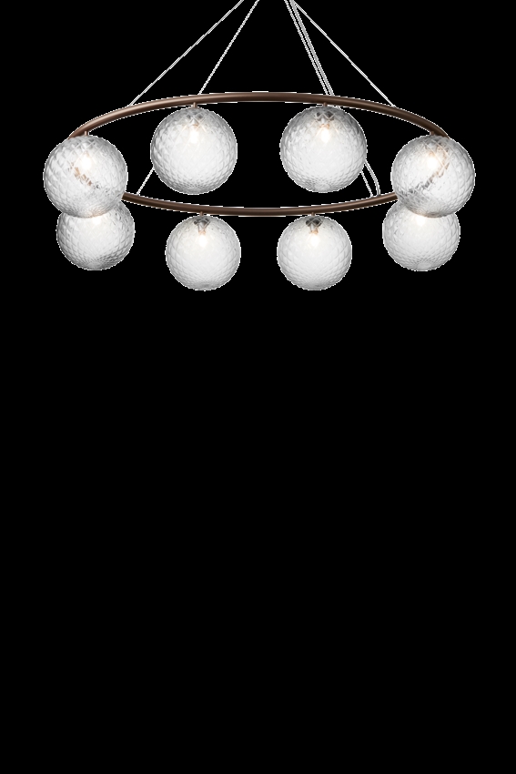 Der Miira-Kronleuchter besteht aus einem Metallring aus eloxiertem Aluminium in einer dunkelbronzenen Farbe. Von hier aus verbreiten die schönen mundgeblasenen Glaskugeln ein sinnliches Licht. Das einfache und klassische Design macht den Kronleuchter in vielen Einrichtungsstilen äußerst vielseitig einsetzbar.