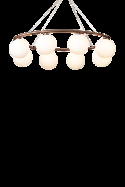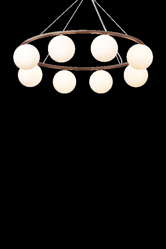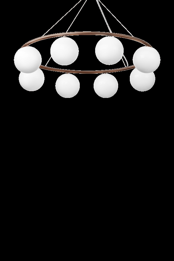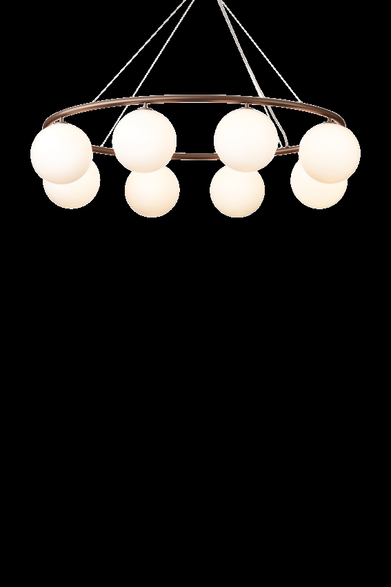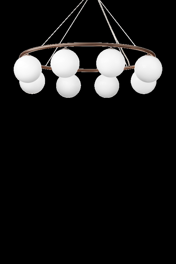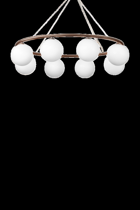 Der Miira-Kronleuchter besteht aus einem Metallring aus eloxiertem Aluminium in einer dunkelbronzenen Farbe. Von hier aus verbreiten die schönen mundgeblasenen Glaskugeln aus Opalglas ein sinnliches Licht. Die einfache und klassische Formgebung macht den Kronleuchter äußerst vielseitig in vielen Einrichtungsstilen.