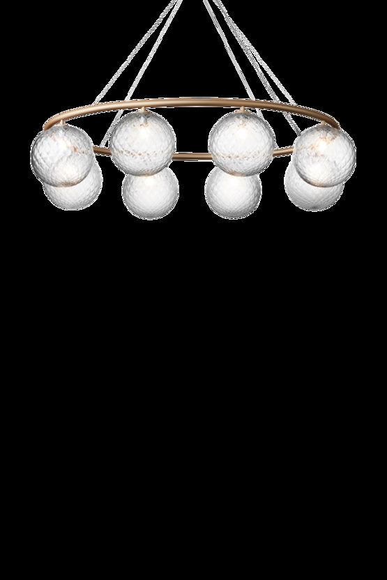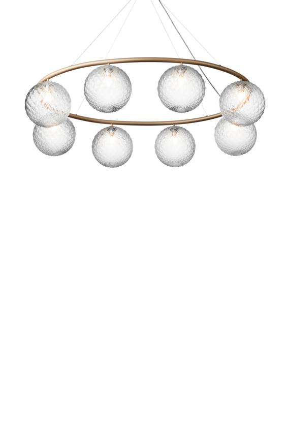 Der Miira-Kronleuchter besteht aus einem Metallring aus eloxiertem Aluminium in einer schönen Messingfarbe. Von hier aus verbreiten die schönen mundgeblasenen Glaskugeln ein sinnliches Licht. Die einfache und klassische Formgebung macht den Kronleuchter in vielen Einrichtungsstilen äußerst vielseitig einsetzbar.