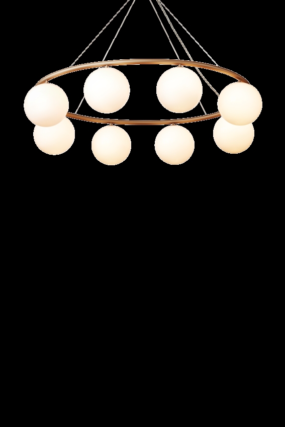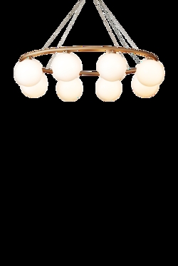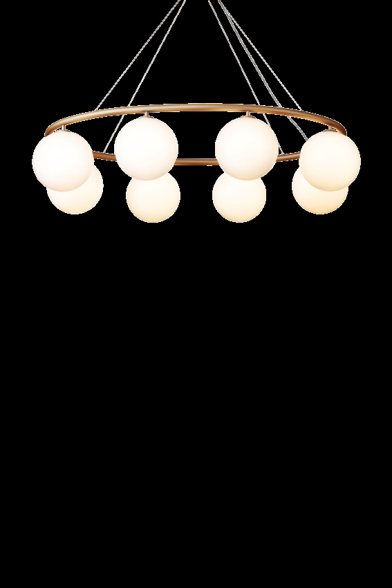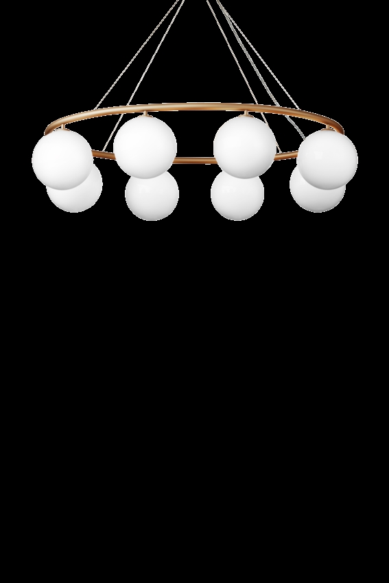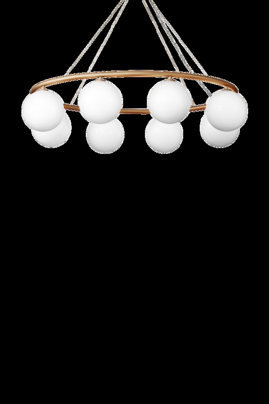 Der Miira-Kronleuchter besteht aus einem Metallring aus eloxiertem Aluminium in einer schönen Messingfarbe. Von hier aus verbreiten die schönen mundgeblasenen Glaskugeln aus Opalglas ein sinnliches Licht. Die einfache und klassische Formgebung macht den Kronleuchter äußerst vielseitig in vielen Einrichtungsstilen.