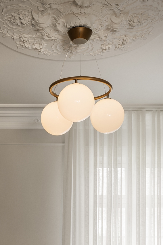 Die Miira-Kollektion von Nuura hat bereits Preise für ihr Design von Sofie Refer gewonnen und wird hier mit einem kreisförmigen Kronleuchter erweitert. Circular 3 ist der kleinste der Kronleuchter, die auch mit 6 oder 8 mundgeblasenen Glaskugeln erhältlich sind. Der Miira Circular Kronleuchter hat einen klassischen Ausdruck und ist eine neue Interpretation des ursprünglichen Kronleuchters. Miira 3 Circular, bestehend aus 3 mundgeblasenen Glaskugeln, hat einen Durchmesser von 54 cm. Die Größe bietet reichlich Gelegenheit, den Kronleuchter an verschiedenen Stellen in der Einrichtung aufzuhängen, beispielsweise im Schlafzimmer, wo er das Licht schön im Raum verteilen kann.