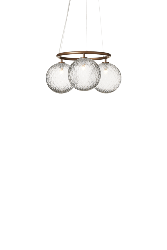 Der Miira-Kronleuchter besteht aus einem pulverbeschichteten Metallring in Messing. Von hier aus verbreiten die schönen mundgeblasenen Glaskugeln aus klarem optischem Glas ein sinnliches Licht. Das einfache und klassische Design macht den Kronleuchter in vielen Einrichtungen äußerst vielseitig einsetzbar.