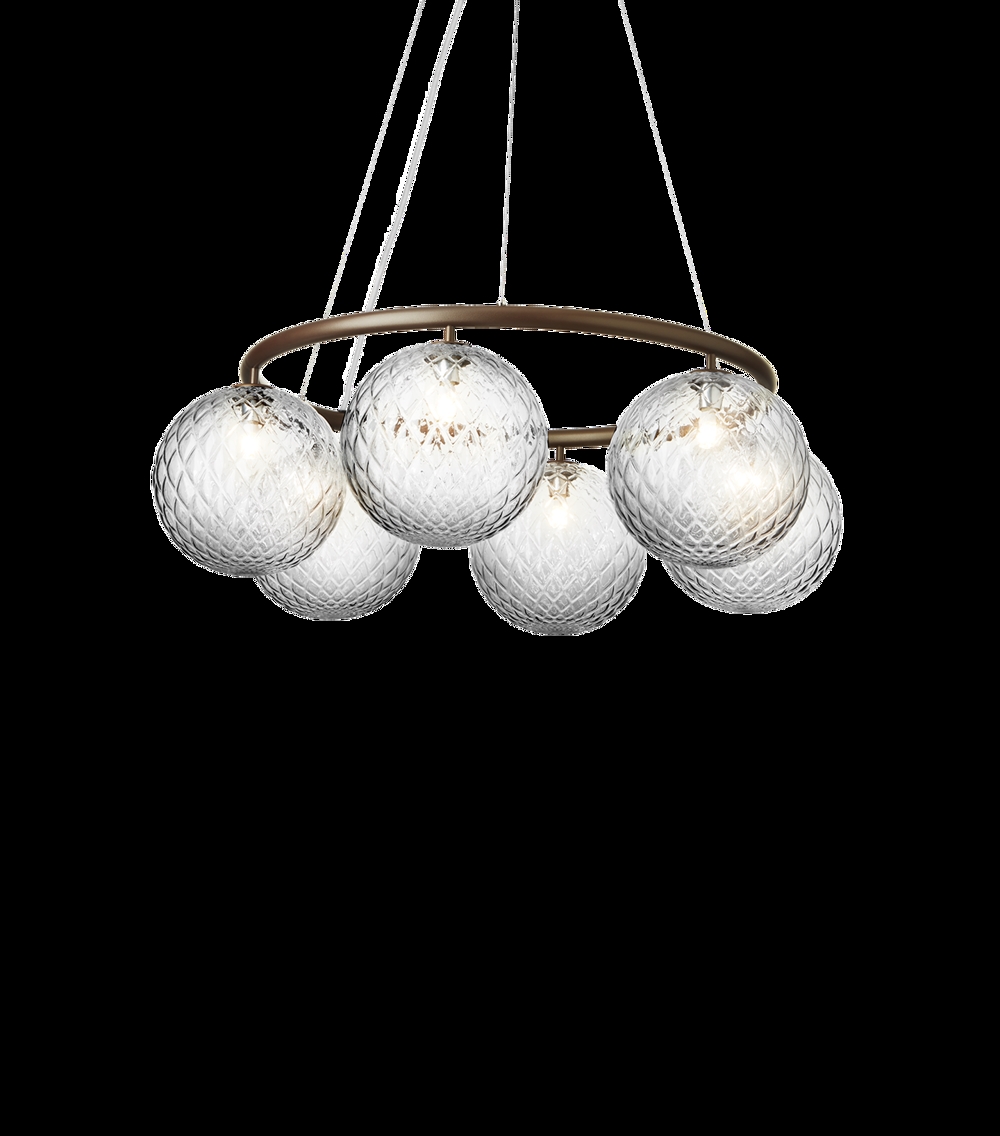 Der Miira 6 Circular mit sechs mundgeblasenen Glaskugeln hat einen Durchmesser von 80 cm. Das macht den Kronleuchter ideal über einem Esstisch oder im Sofabereich.