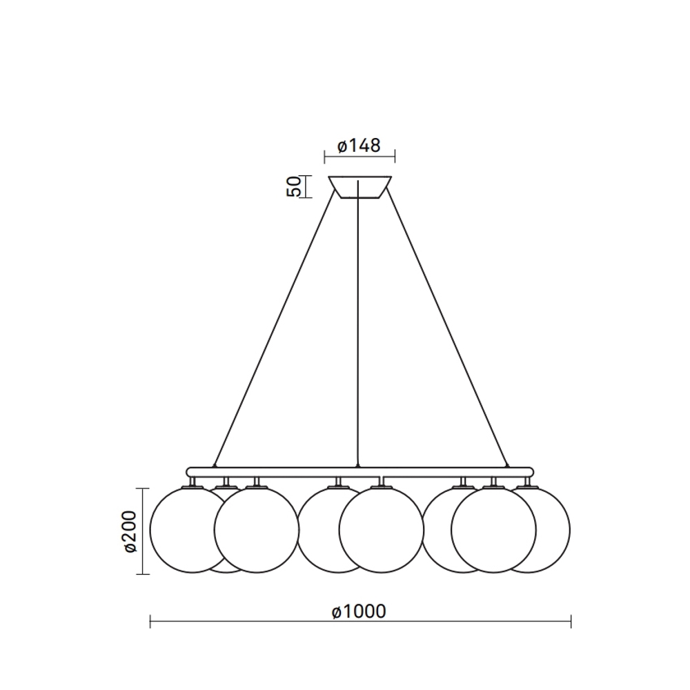 Miira 8 Circular mit acht Glaskugeln hat einen Durchmesser von 100 cm. Der größere Kronleuchter eignet sich besonders über dem großen Esstisch oder als schöne Beleuchtung im großen Eingangsbereich oder Flur.