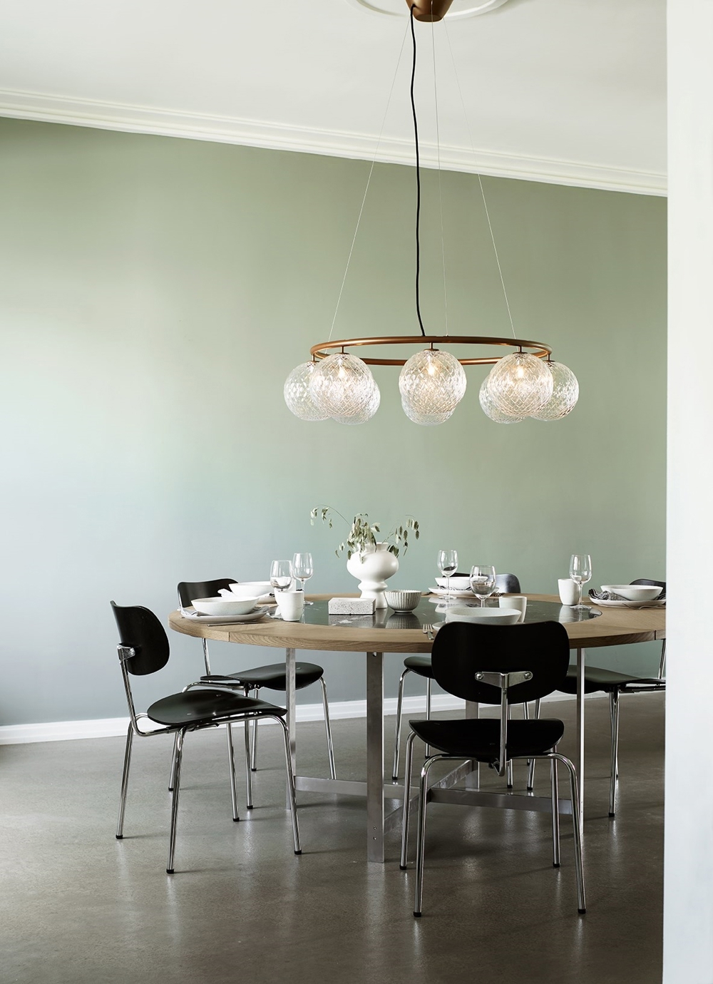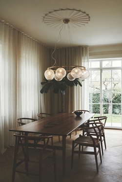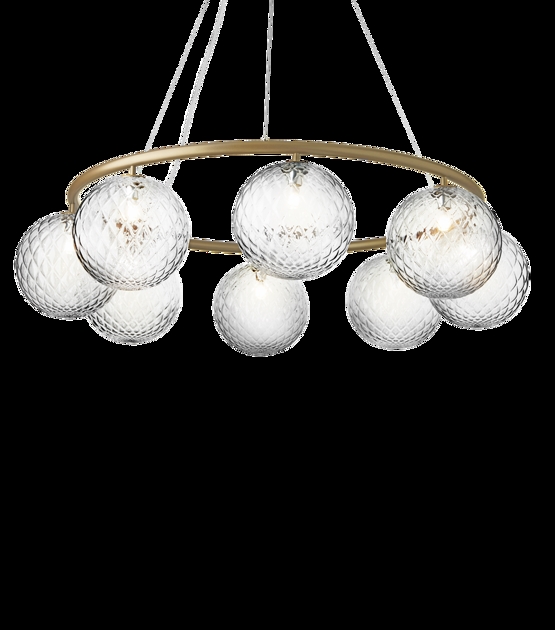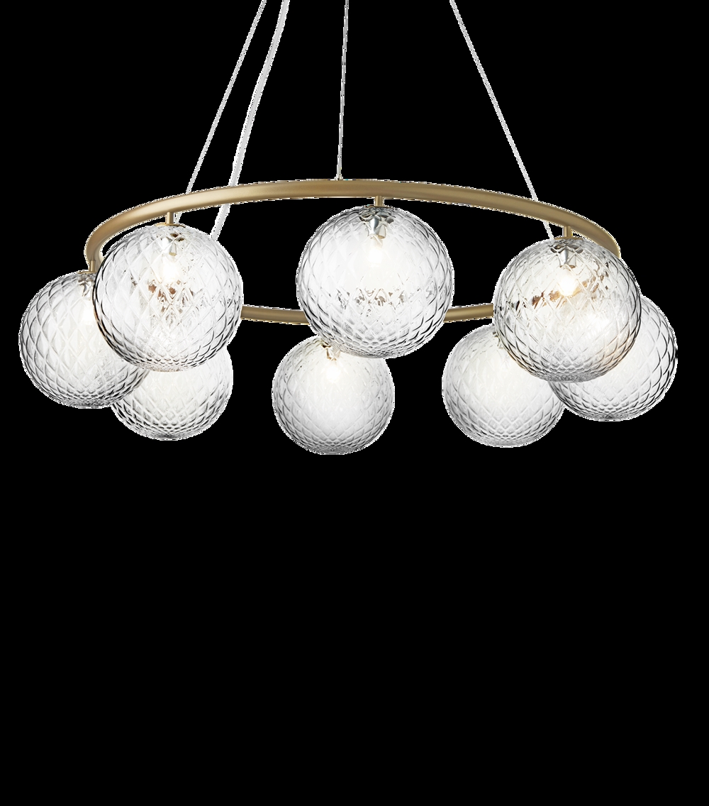 Der Miira 8 Circular mit acht Glaskugeln hat einen Durchmesser von 100 cm. Der größere Kronleuchter eignet sich besonders über dem großen Esstisch oder als schöne Beleuchtung im großen Eingangsbereich oder Flur.