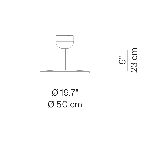 Millimetro ist mit seinem festen Stiel zwischen Decke und Schirm eine Mischung aus einer klassischen Deckenleuchte und einem Pendelleuchte. Der dünne Schirm mit Spiegeleffekt verbirgt die Lichtquelle, die ein gleichmäßiges, weiches Licht ausstrahlt.