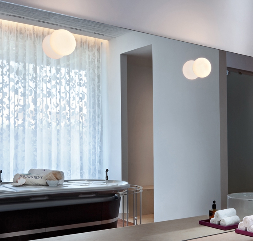 Glo-ball ist eine beliebte und stilvolle Serie von Wand- und Deckenleuchten in verschiedenen Größen, sowie Pendelleuchten, Tisch- und Stehleuchten.