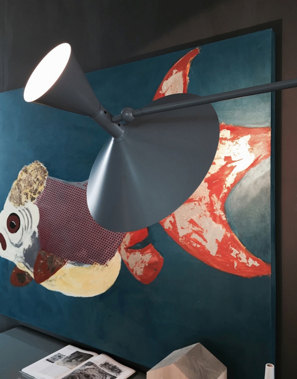 Die Wandleuchte hat zwei bewegliche Gelenke - eines an der Wand und eines am Lampenschirm. Dadurch ist die Lampe sehr anpassungsfähig und kann auf individuelle Bedürfnisse eingestellt werden.