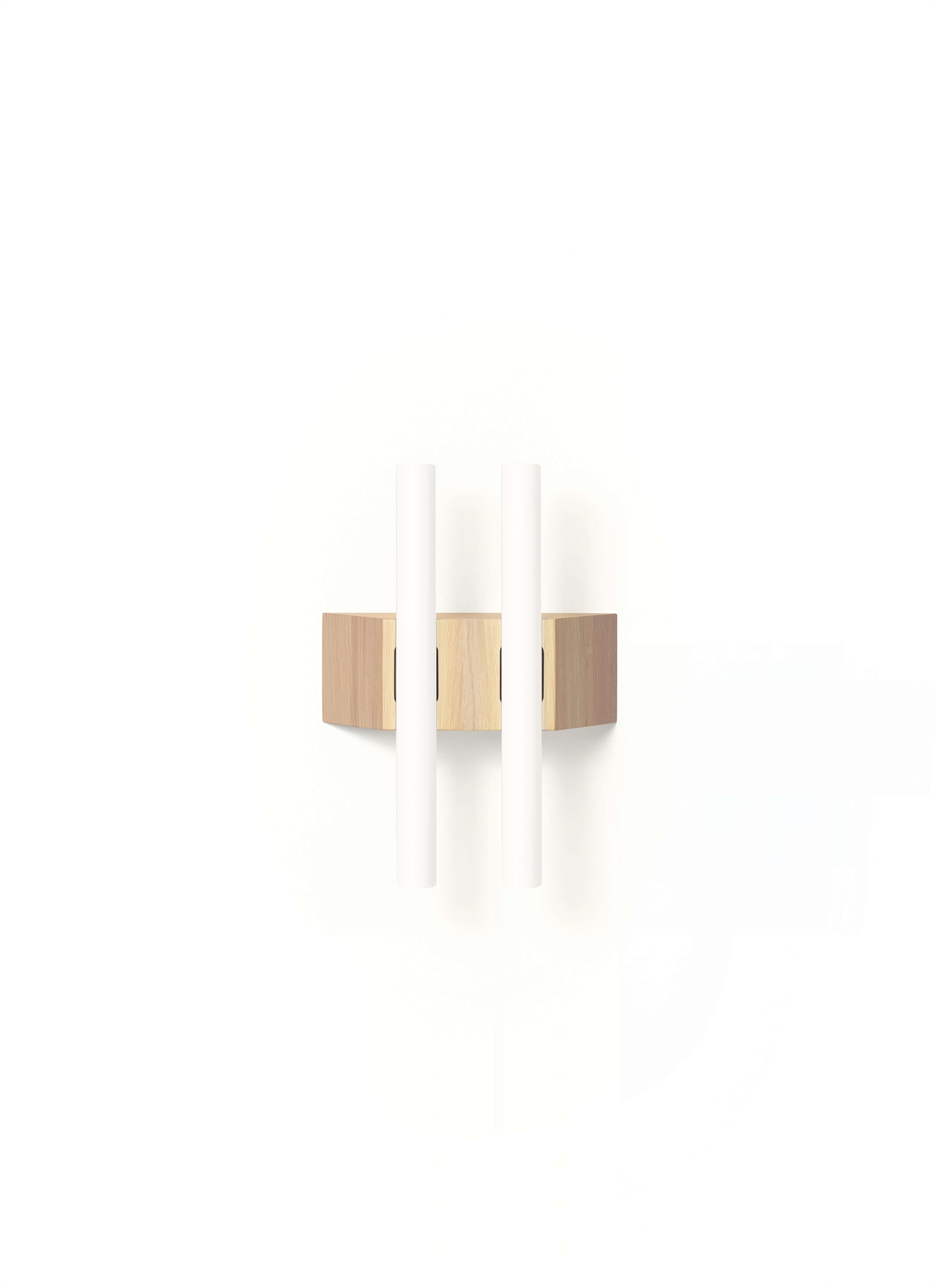 Hollands Licht Minimism Double Wandleuchte, Eiche – entworfen von Mitchel Verkuijlen und Joost Vogelaar