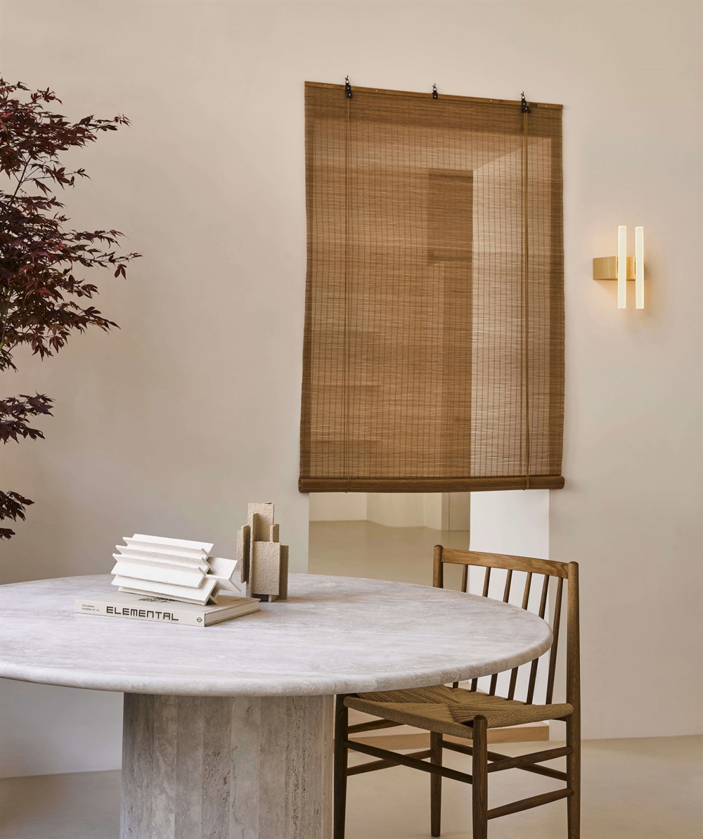 Minimism vereint Holz und LED-Technologie in einer einfachen Wandleuchte oder Deckenleuchte. Die Lampe kann beispielsweise über oder neben einem Spiegel oder an der Wand in einem Arbeitsumfeld platziert werden.