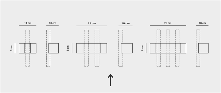 Minimism ist in naturgeölter Eiche und in schwarz gebeizter Eiche erhältlich. Beide Varianten gibt es neben der Ausführung für zwei Lichtquellen auch für eine oder drei Lichtquellen. Lichtquellen müssen separat erworben werden.