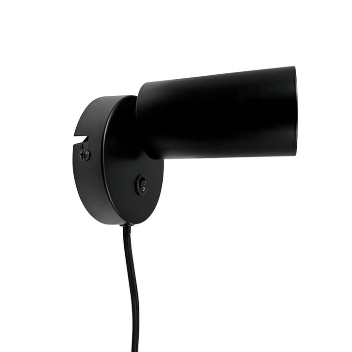 Die moderne Wandleuchte ist ein Spot mit Schalter an der Basis und mitgeliefertem Kabel. Der Spot bietet ein verstellbares und gezieltes Licht und kann beispielsweise als Lampe im Schlafzimmer oder an einem anderen Ort mit Bedarf für Spot- oder Leselicht verwendet werden. Die moderne Wandleuchte hat ein modernes Design in zeitlosem Schwarz, das zu vielen verschiedenen Einrichtungsstilen passt.