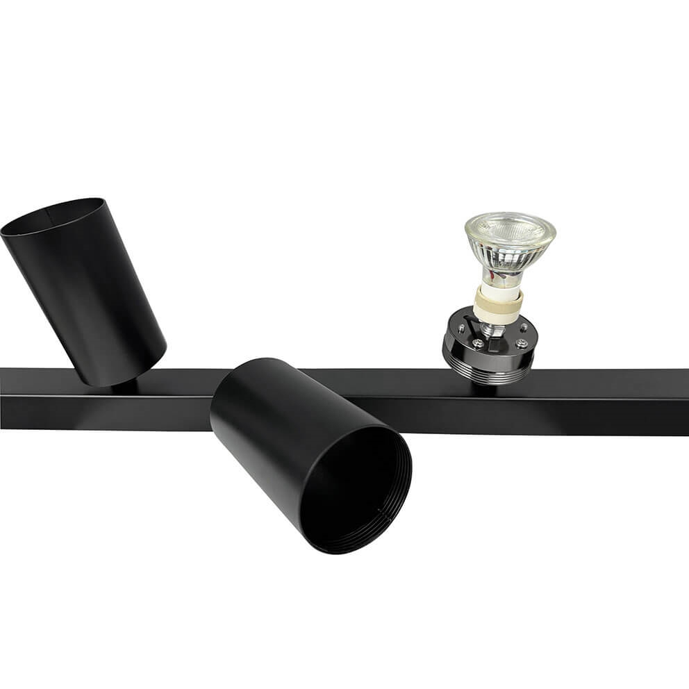 Die moderne Deckenschiene mit vier Spots bietet ein verstellbares und gezieltes Licht und kann beispielsweise als Lampe im Flur, Büro, Küche, Schlafzimmer oder an einem anderen Ort mit Bedarf für gutes Spotlicht verwendet werden. Die moderne Schiene mit den vier Spots hat ein modernes Design in zeitlosem Schwarz, das in viele verschiedene Einrichtungsstile passt.
