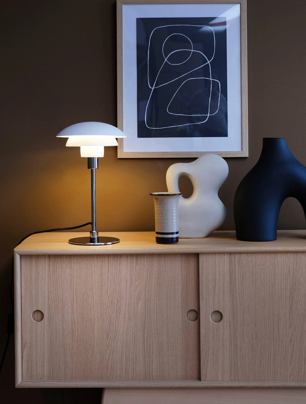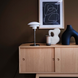 Dyberg Larsen Morph D21 Tischlampe, weiß/chrom - entworfen von Frank Kerdil