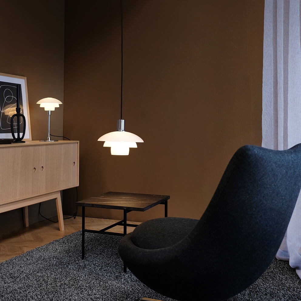 Morph ist als Pendelleuchte in zwei Größen sowie als Tischlampe, Wandleuchte, Stehlampe und Außenleuchte erhältlich.