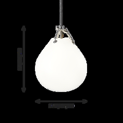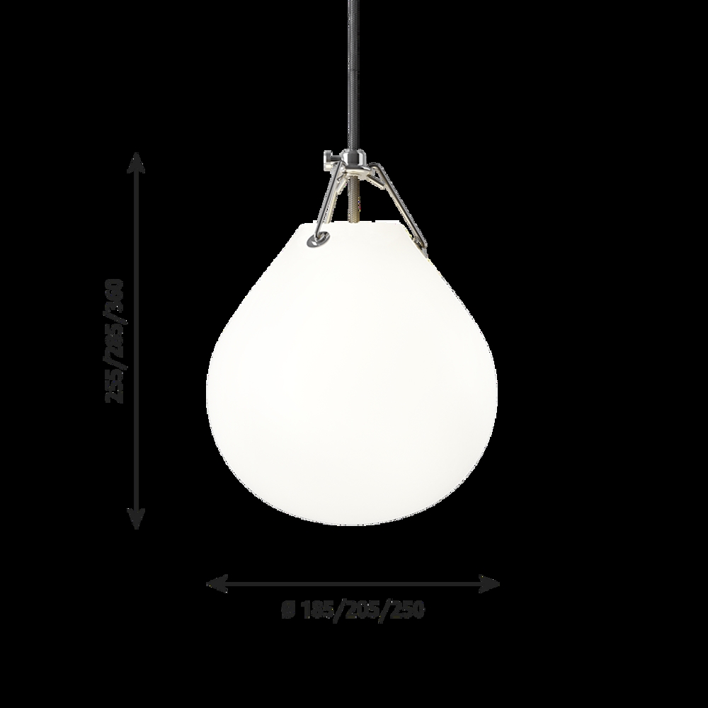 Die Pendelleuchte hat eine Tropfenform und besteht aus mattem weißem Opalglas, das für ein diffuses, blendfreies Licht in jedem Raum sorgt.