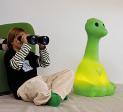 Big Dino ist aus Polyethylen gefertigt und besteht zu 30% aus recyceltem Material. Sie lässt sich leicht mit einem feuchten Tuch reinigen und ist 100% recycelbar.