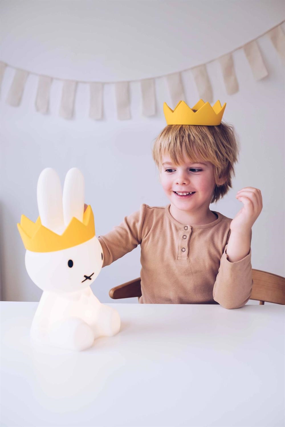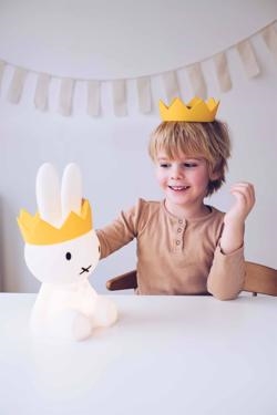 Achtung! Die Krone ist keine Lampe an sich, sondern ein Zubehör, das für die Miffy-Lampe entworfen wurde. Die elegante Krone sitzt schön auf beiden Ohren des Kaninchens, egal ob es sich um die kleinere Miffy First Light-Lampe (30 cm) oder die originale Miffy-Lampe (50 cm) handelt. Die Krone kann auch auf der Miffy XL-Lampe (80 cm) verwendet werden, wo sie um ein Ohr platziert wird. Beim Kauf der Krone ist außerdem ein Stirnband enthalten, damit die Kleinen die Krone leicht tragen können.