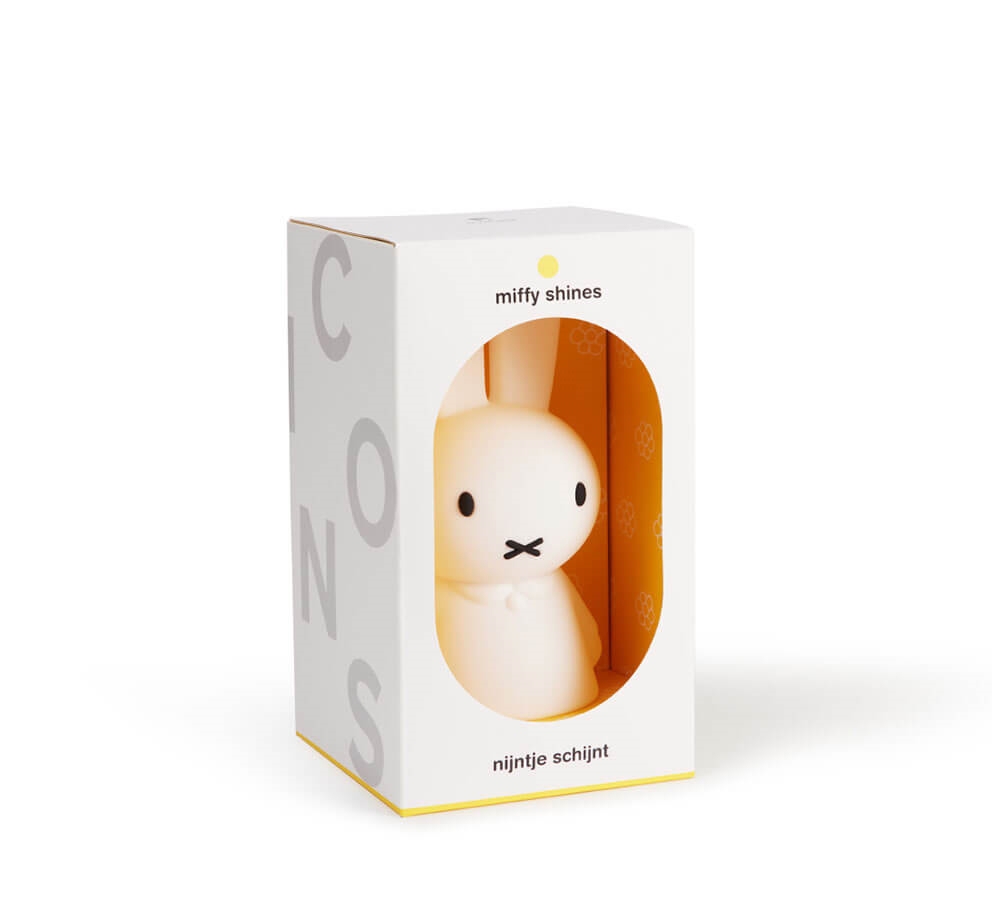 Miffy Shines ist eine wiederaufladbare LED-Lampe mit einem angenehmen Licht, die gerne dein Freund sein möchte. Die süße Kaninchenlampe ist aus weichem BPA-freiem Silikon gefertigt und strahlt mit ihrem goldenen Herzen.