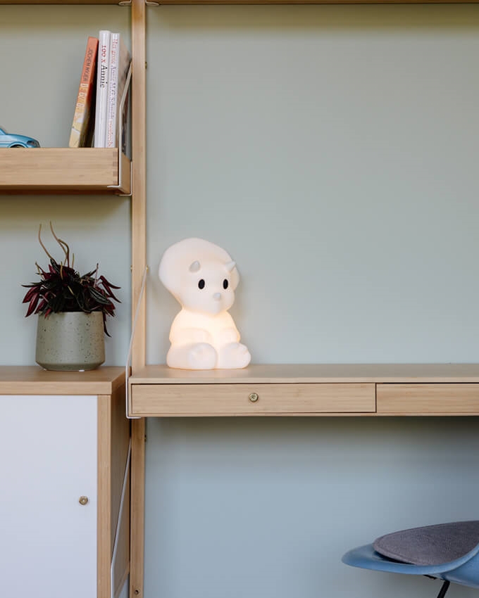 Die First Light Serie besteht aus niedlichen Tierlampen, die alle gute Freunde sind und gemeinsam jedem Kind helfen, eine gemütliche Atmosphäre im Kinderzimmer zu schaffen. Mira ist ein süßer Dinosaurier, der leicht überallhin mitgenommen werden kann.