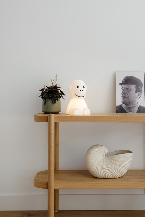 Die First Light Serie besteht aus niedlichen Tierlampen, die alle gute Freunde sind und gemeinsam jedem Kind helfen, eine gemütliche Atmosphäre im Kinderzimmer zu schaffen. Monkey ist ein süßer Affe, der leicht überallhin mitgenommen werden kann.